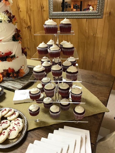 Their ceremony was absolute perfection in this amazing historic chapel. Cara’s choice of colors made for stunning floral arrangements. A bold choice for tablecloths and centerpieces made the church’s Family Center shine. Colby chose his favorite red velvet cupcakes and monogramed cookies instead of a typical groom’s cake. A sparkler send-off and a sweet kiss under the gorgeous chandelier wrapped up the beautiful evening.